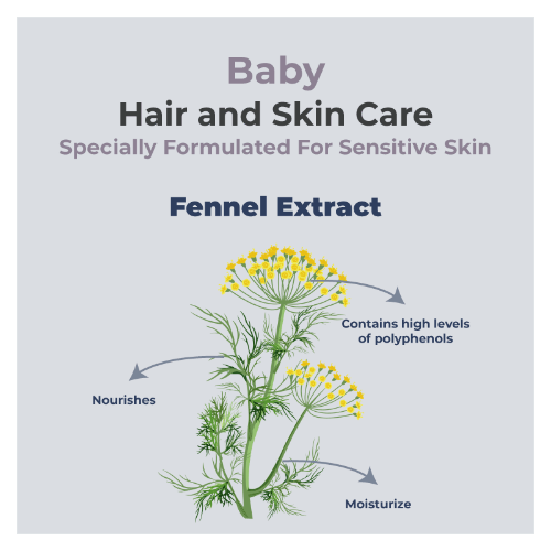 - مُدعّم بمستخلص الشمر، يغذي ويرطب البشرة الحساسة للأطفال حديثي الولادة.